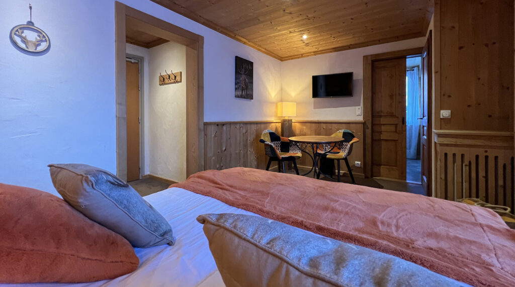 Carefully decorated and personalized by us, our 30 chalet-style rooms welcome you in a warm atmosphere of wood and shimmering fabrics