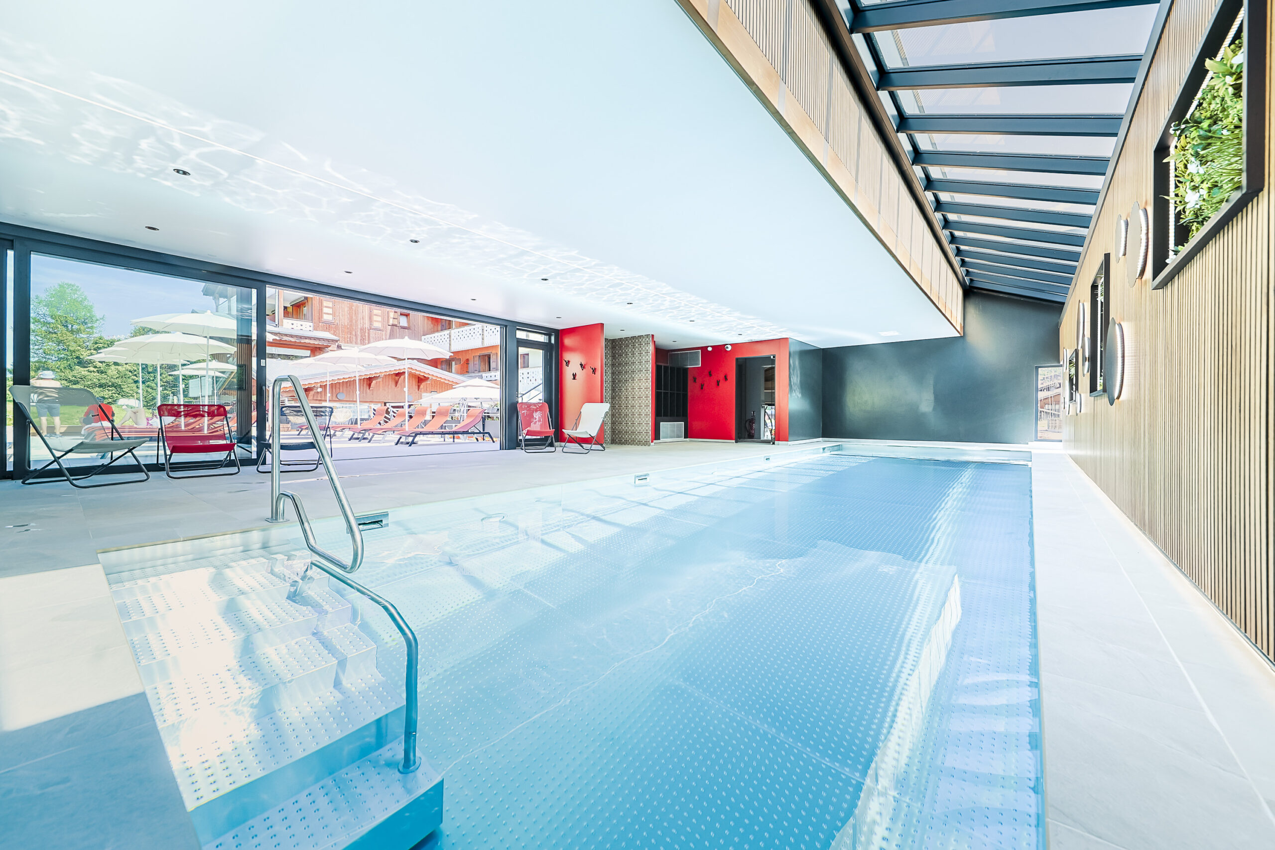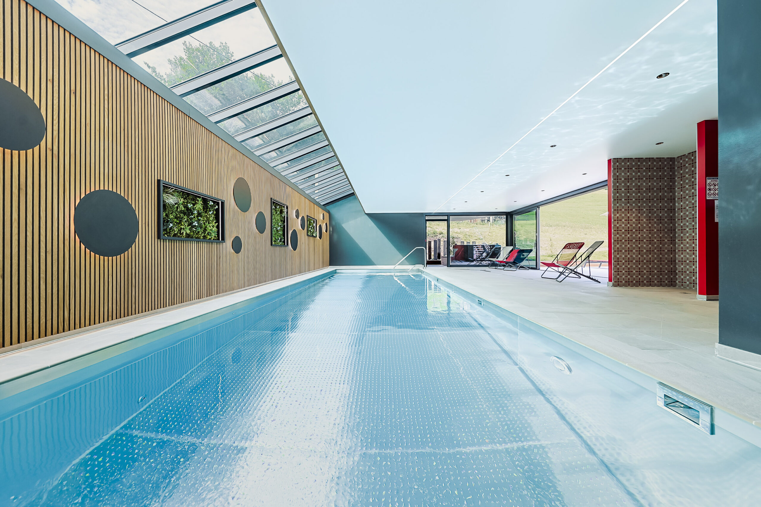 Découvrez notre piscine chauffée avec son bassin inox (12×3,60) made in Haute-Savoie.